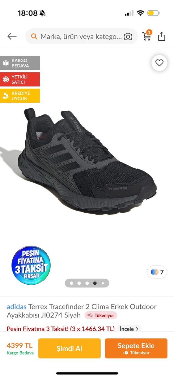 Siyah adidas Terrex Tracefinder 2 Clima erkek outdoor ayakkabılar, bağcıklı tasarım ve dayanıklı kauçuk tabanla spor ve sokak stili için uygundur. Ayakkabı 44,5 babama almıştım bir kere giydi sadece daha alalı 10 gün falan oldu