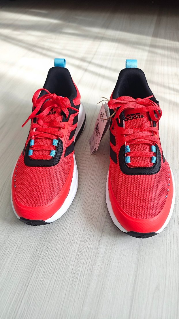 Adidas erkek koşu ayakkabısı, canlı kırmızı renkte, baskılı detaylı ve bağcıklı. Kauçuk tabanlı, spor ve sokak tarzı için uygun. Trendy casual görünüme uygun. 43.5 Beden (27.5 cm)