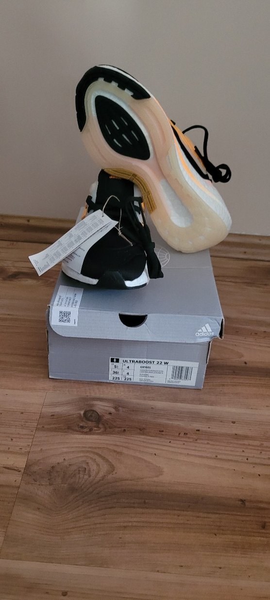 Adidas Ultraboost 22 W siyah baskılı koşu ayakkabısı, cırt cırtlı detaylar ve kauçuk tabanlarla spor ve sokak giyimine uygun. Ürün hiç kullanilmamistir. etiketi üzerindedir. 36 numaradır.