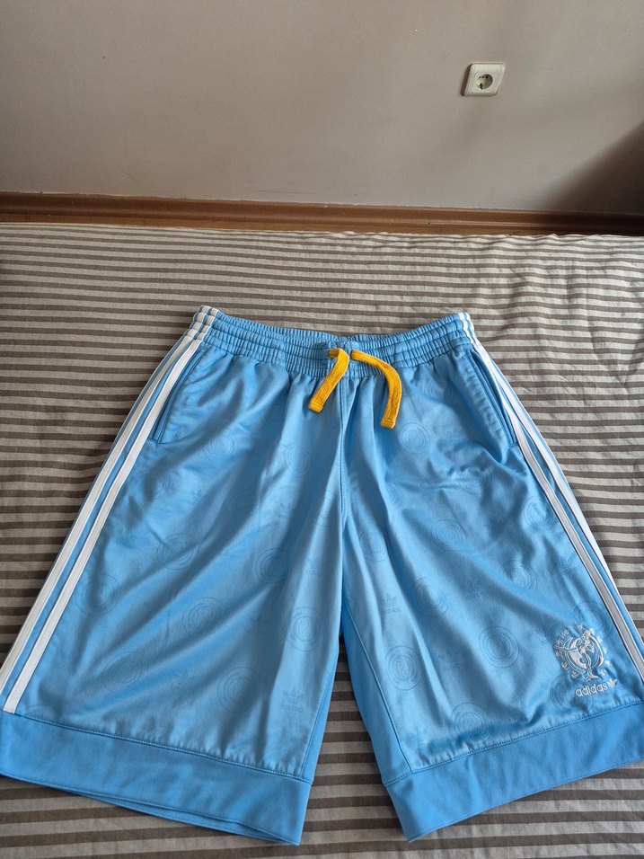 Orijinal Adidas Originals vintage şorttur. Üzerindeki figürlü özel nakış logo, standart trefoil logolardan farklıdır ve nadir koleksiyon parçasıdır. Boy 58 cm bel 50 cm' dir. Sıfıra yakın kondisyondadır. Yıpranma, sökük veya leke yoktur.
