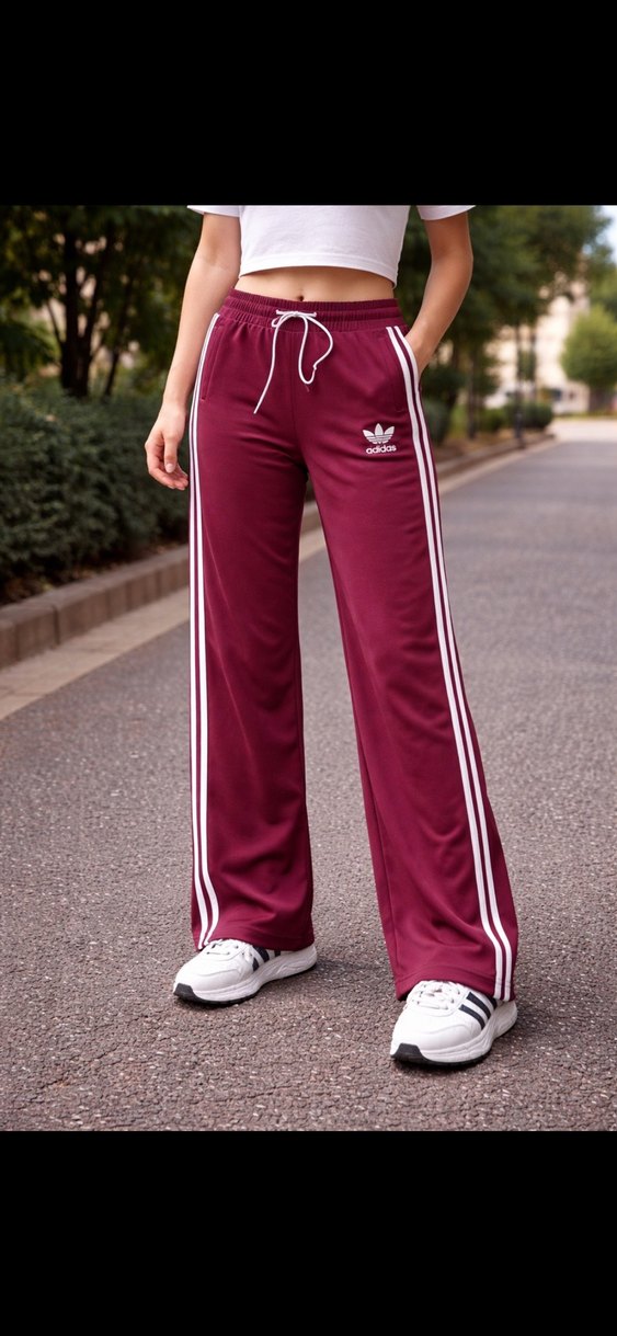 Bordo renk, fermuarlı cepli, yan şerit detaylı, sentetik kumaştan rahat kesim eşofman. Spor ve sokak stiline uygun. ♀️