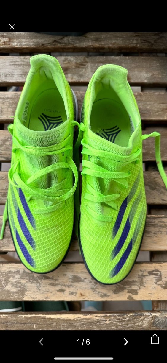 Adidas X ghosted bağcıksız halı saha kramponu. Bağcıksız olması büyük kolaylık. Dar kalıp. Çabuk küçüldü. Az kullanıldı. Fotoğraflardaki gibi. Çok noktasal bir kumaş kalkması sağ bilek içinde var. Son fotoğraf.