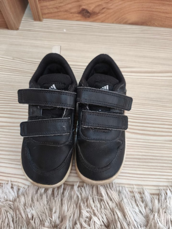 Siyah renk, cırt cırtlı bantlara ve kauçuk tabana sahip, sade ve basic tarzda erkek çocuk spor ayakkabısı. Ürün iyi durumdadır herhangi bir kusuru yoktur