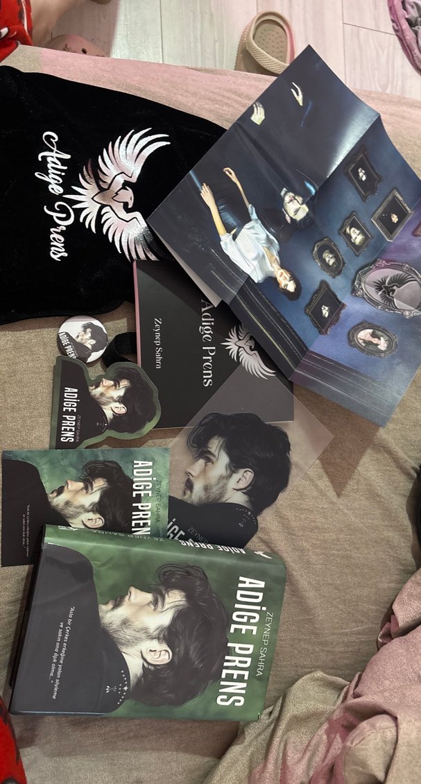 Adige Prens dergi seti, sanat dolu kapak tasarımları ve portreler içeren çeşitli sayılar ve ilgili ürünlerden oluşur.