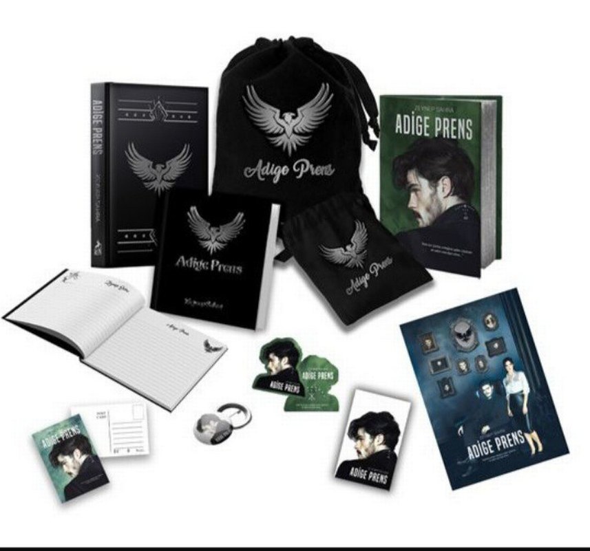 Adige Prens kitabı, defterler ve çeşitli aksesuarlar içeren, logo ve tasarım temalı bir set. Sıfırdır, daha hiç okunmadı alındığı gibi duruyor... Yan baskılı ciltlidir.