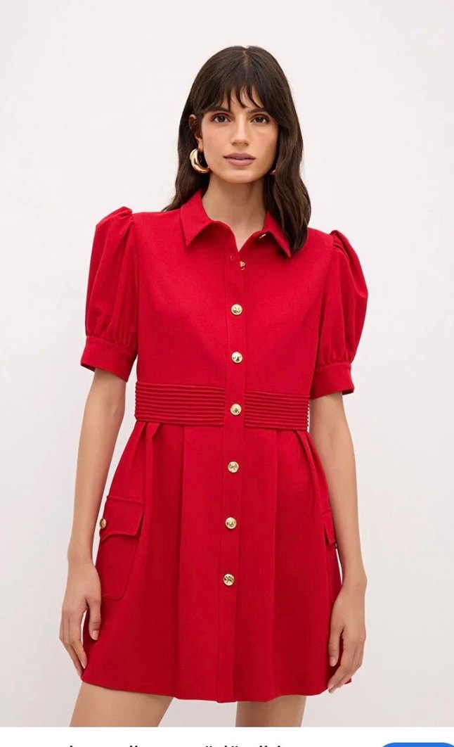 Etikwtli hatasızdır.balon kollu,önden düğmeli kırmızının e güzel tonu ve adl nin çok sevilen elbisesi tek beden olarak mevcut✌#adil ışık#balon kol#nervürlü elbise#