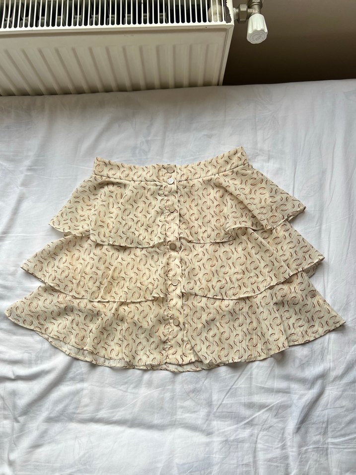 Adil Işık Bej Fırfırlı Mini y2k Etek