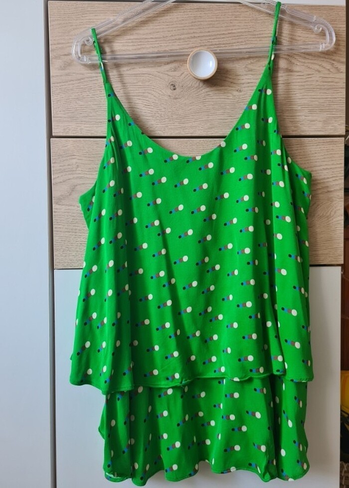 Kombinlenmesi çok kolay rahat ve şık bir bluz. Hic bir deformesi veya kusuru yoktur 2 3 kez giyildi. Arkası önünden daha kisadir