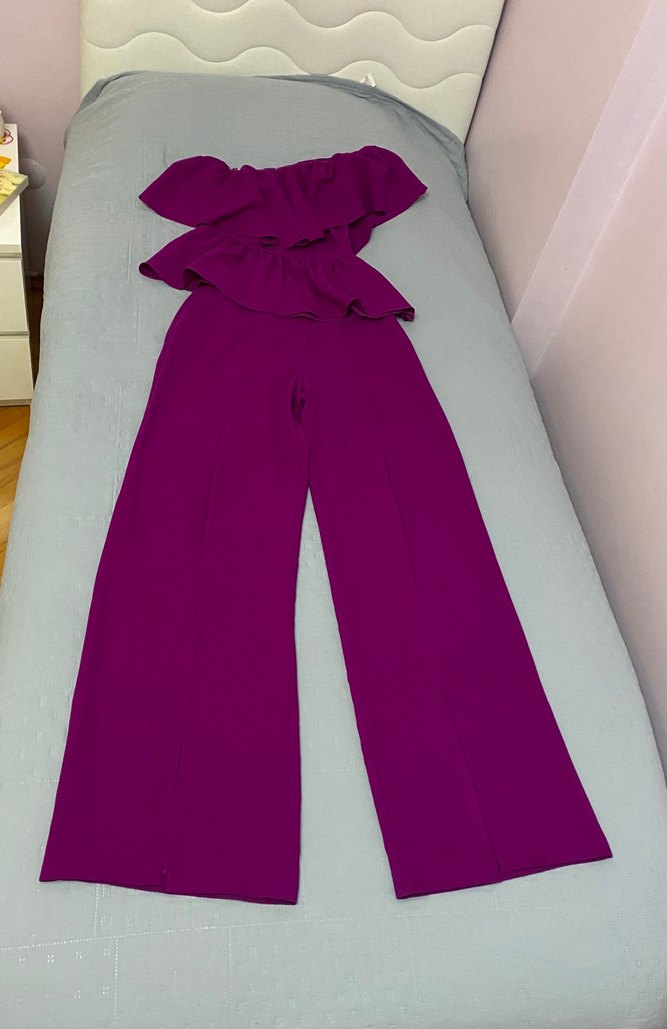 Adil Işık Bluz Pantolon İkili Takım bluz asimetrik ve volanlı , pantolon önden yırtmaçlı dökümlü kumaş 36 beden. Koktey , özel kutlama, özel bir gece için çok ideal havalı, zarif bir parça