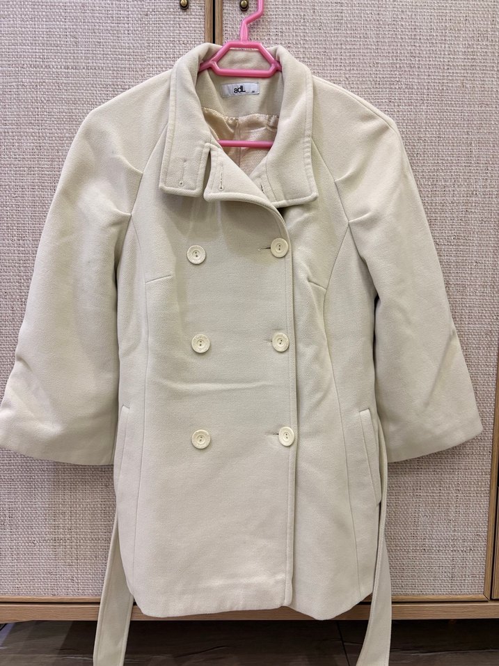 Beyaz renkli, düğmeli ve yakalı kabanı. 3/4 kollu, normal kesim ve midi boyda, yumuşak sentetik kumaştan üretilmiştir. Desensiz, ofis için uygun şık bir modeldir.