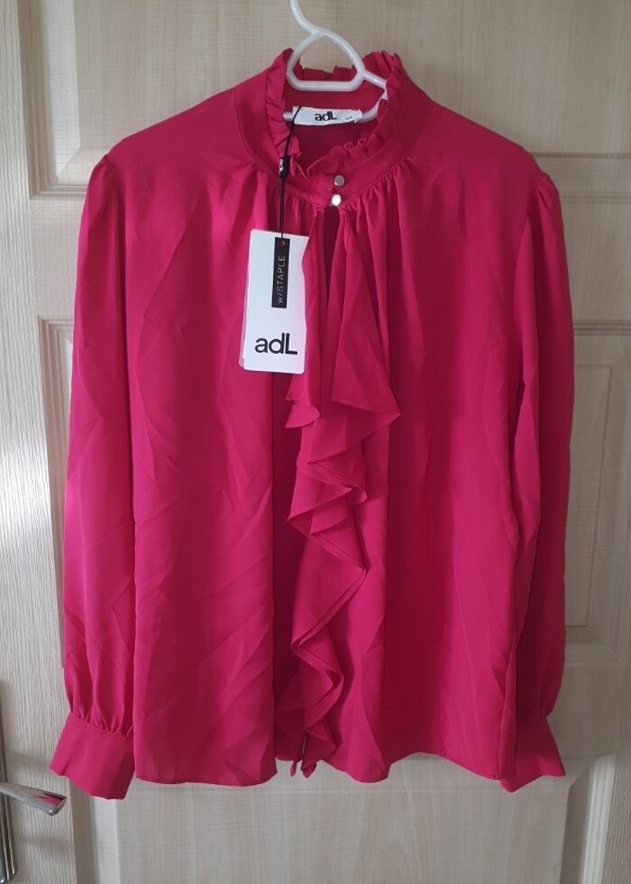 Fuşya pembe yumuşacık dökümlü gömlek. Bedeni XS ama kalıbı geniş. İki kol altı 50, boyu 60-65 cm