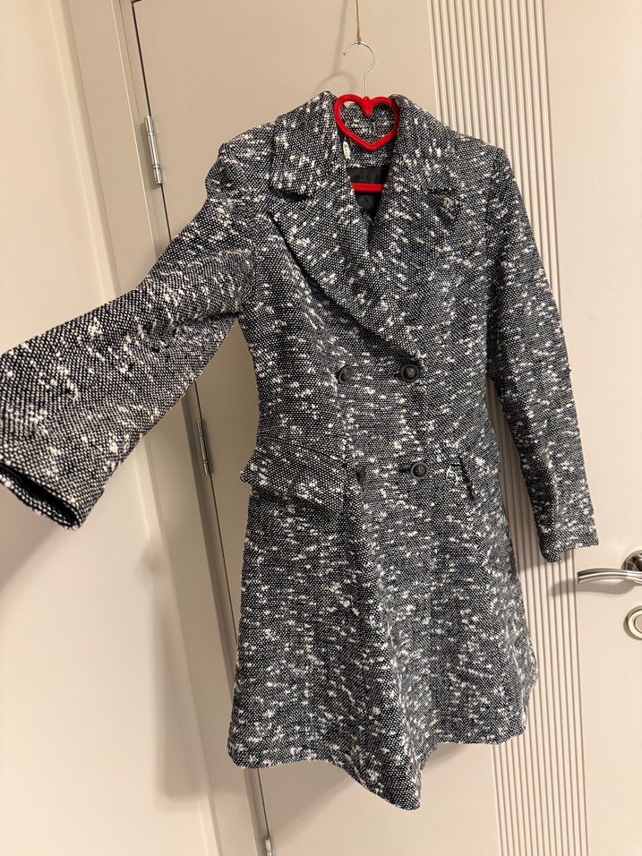 Adil Işık Group’un GünCel koleksiyonuna ait, siyah-beyaz dokulu kumaşa sahip kruvaze kesim kaban. Şık ve klasik model Günlük kullanım & ofis için uygun Rahat kalıp Temiz, sorunsuz, yıpranma yok Beden: 2 (S–M arası uyumlu) Renk: Siyah – Beyaz Marka: GünCel (Adil Işık Group) Detaylı ölçü istenirse memnuniyetle paylaşırım