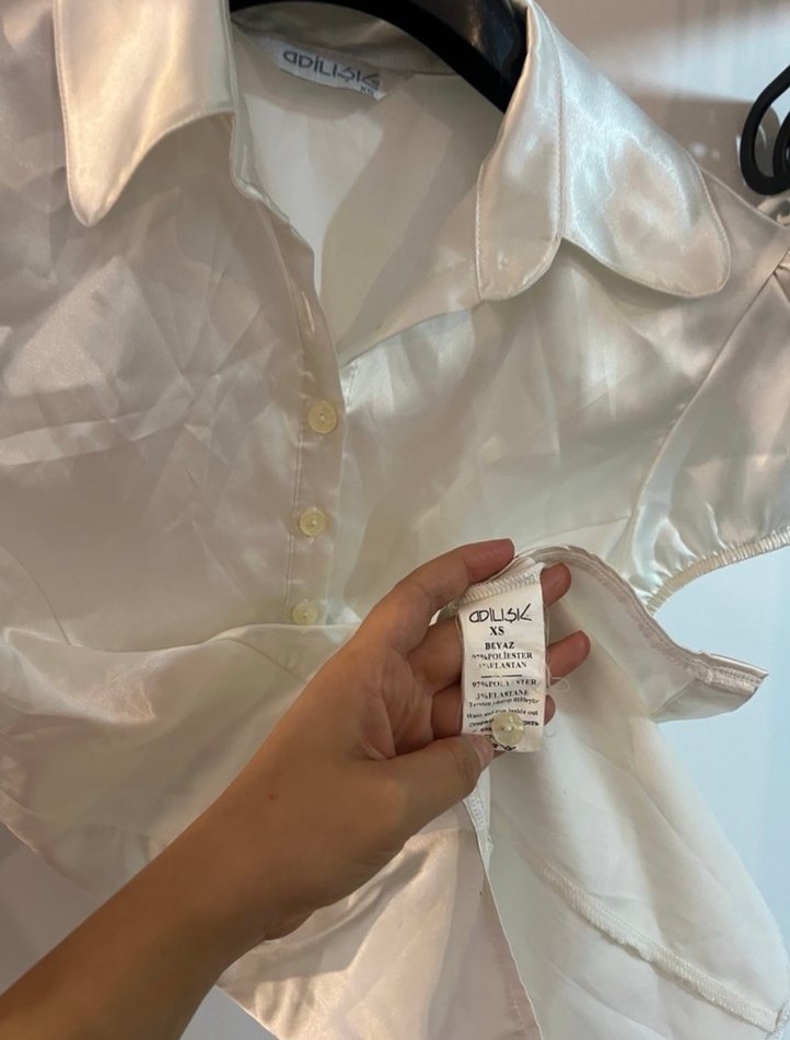 Adil Işık Kadın Beyaz Saten Kısa Kollu Gömlek