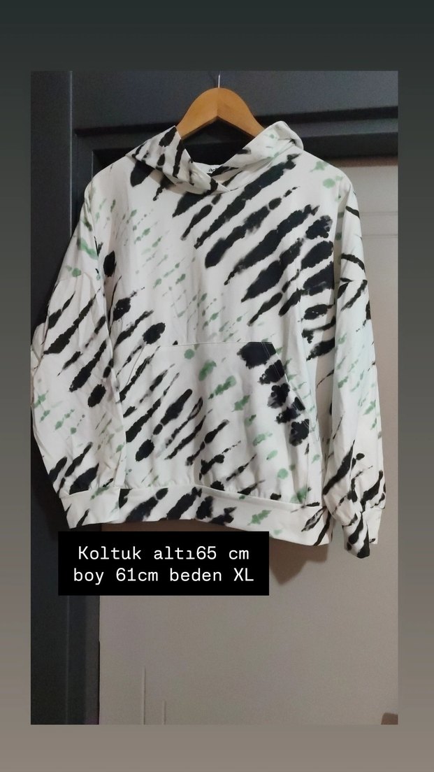 Kadınlar için gri batik desenli, , uzun kollu, kısa ve bol kesim sweatshirt. takım Yumuşak sentetik kumaştan, günlük kullanıma uygun. XL beden, kol altı 65 cm, boy 61 cm.