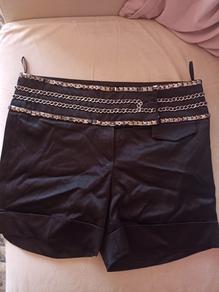 Kemer detaylı, yılan desenli ve zincir süslemeli siyah Seten mini şort, cesur ve gotik tarz için uygundur. bel 40 cm'dir boy 34 ve 35 cm arasıdır üstte çok şık duruyor