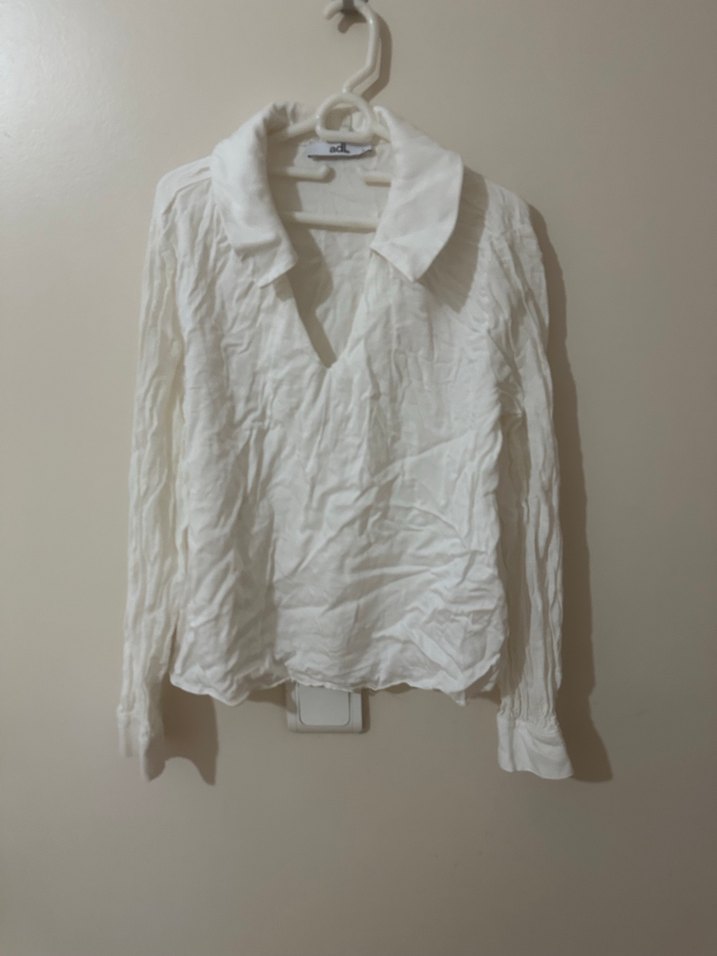 Adil Işık Keten karışımlı Ekru S beden uzun kollu , % 100 modal bluz. İki koltuk arası: 49 cm, 2 omuz arası : 40 cm, uzunluk: onuzdan etek ucuna: 52 cm