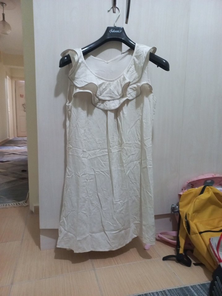 fermuar detaylı fırfırlı keten yumuşacık astarli elbise sorunu yok sadece ütü istiyor ful astarli iki kol arasi 49 cm boyu 90 cm