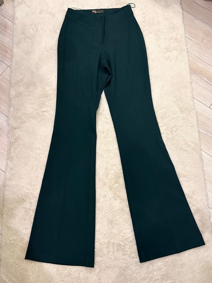 Yeşil renkte, sentetik kumaştan, ispanyol kesim ve kadın kumaş pantolon. Cengiz Abazoğlu serisinden. Hiç giymedim.