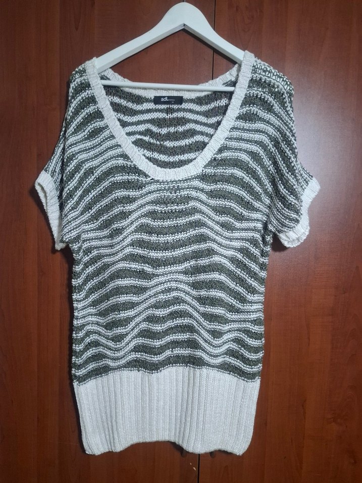 G/22...Hediye geldi..Hiç giyilmedi..Beden uymadı..M Beden Geniş kalıp..40/42 bedenede uyar..Harika bir ürün..Küf yeşili ve krem renkleri hakim... Beden genisliği:63cm..Boy:71cm.. Lütfen Ölçuleri kontrol ediniz..#adilisik#kazak#flos#suveter#