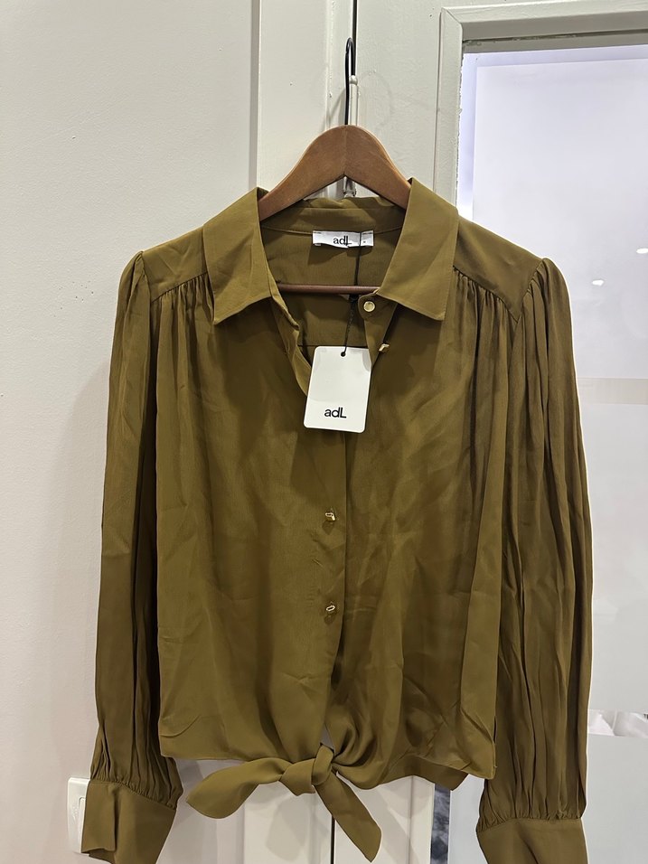 Bej renkli, parlak görünümlü, uzun kollu ve yakalı bu kadın gömleği düğmeli ön kapamaya sahiptir. Salaş kesimi ve normal boyu ile ofis için uygun şık bir tercih.