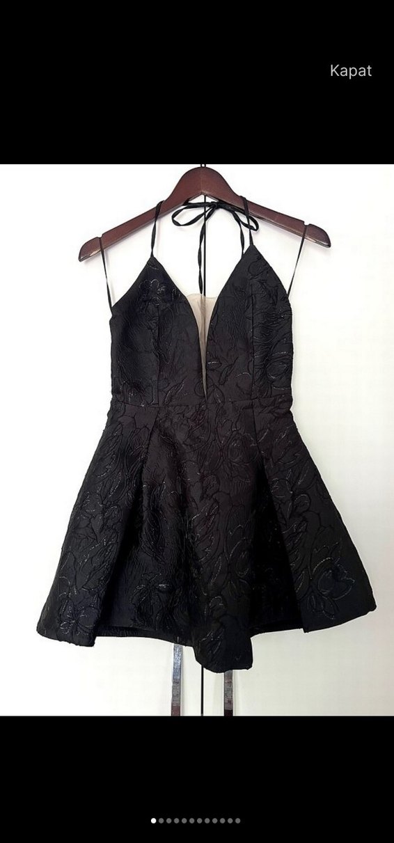 Siyah mini elbise, V yaka, ince askılı, dantel ve nakış detaylarıyla romantik geceye uygun gotik tarzda şık bir seçim. Mezuniyet için 1 kere giyildi.