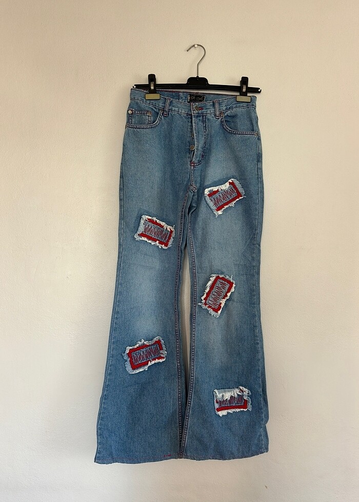 Adil ışık orjinal yama detaylı ispanyol jean Vintage Messy girl