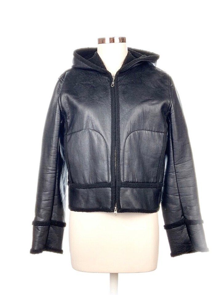 Adil Işık Siyah Deri Görünümlü Kapüşonlu Biker Ceket