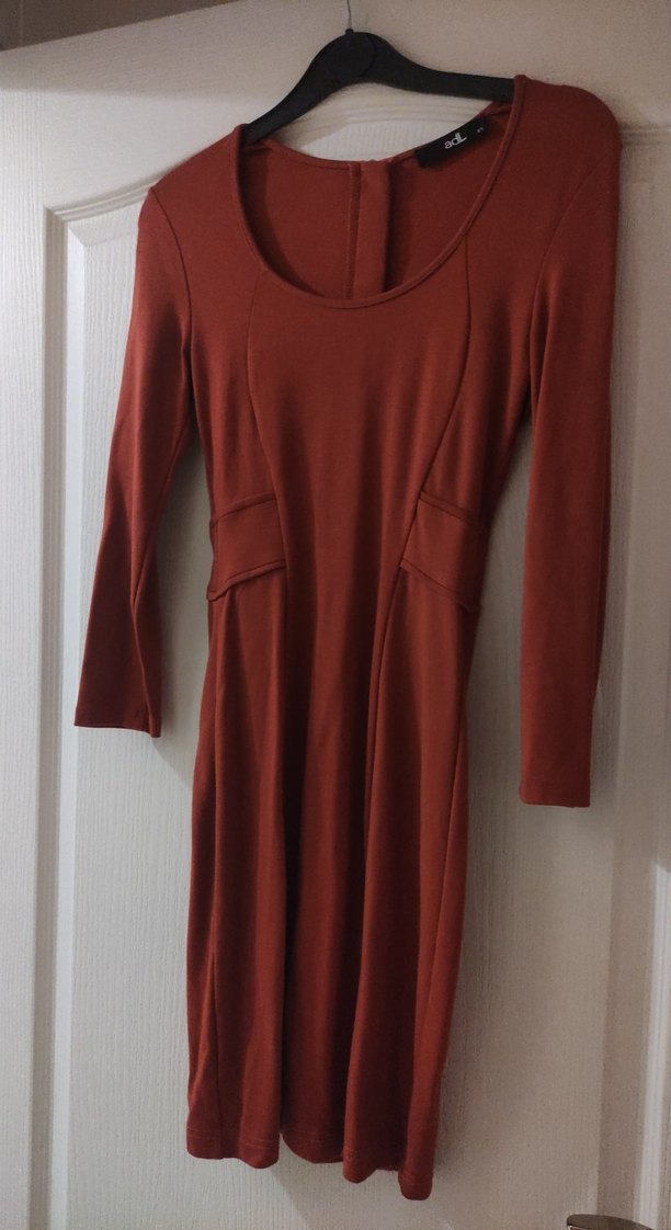 hem çok şık hem de çok güzel bir kalıba sahip ✨kiremit ton renkli, uzun kollu ve vücudu oturan kesim şık ve sıcak tutacak bir elbise, modern ofis stiline de günlük giyme de uyumlu uygundur.