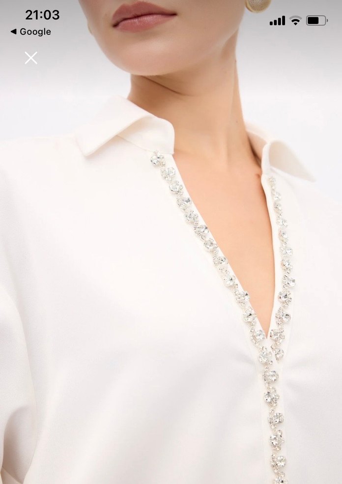 Etiketli hatassızdır.geniş kalıptır saten kumaştır yakası taşlıdır taşlarında eksik yoktur.arkadasn basenim yarısına kadar kapatıyor.#adil ışık#mert aslan#taşlı bluz#