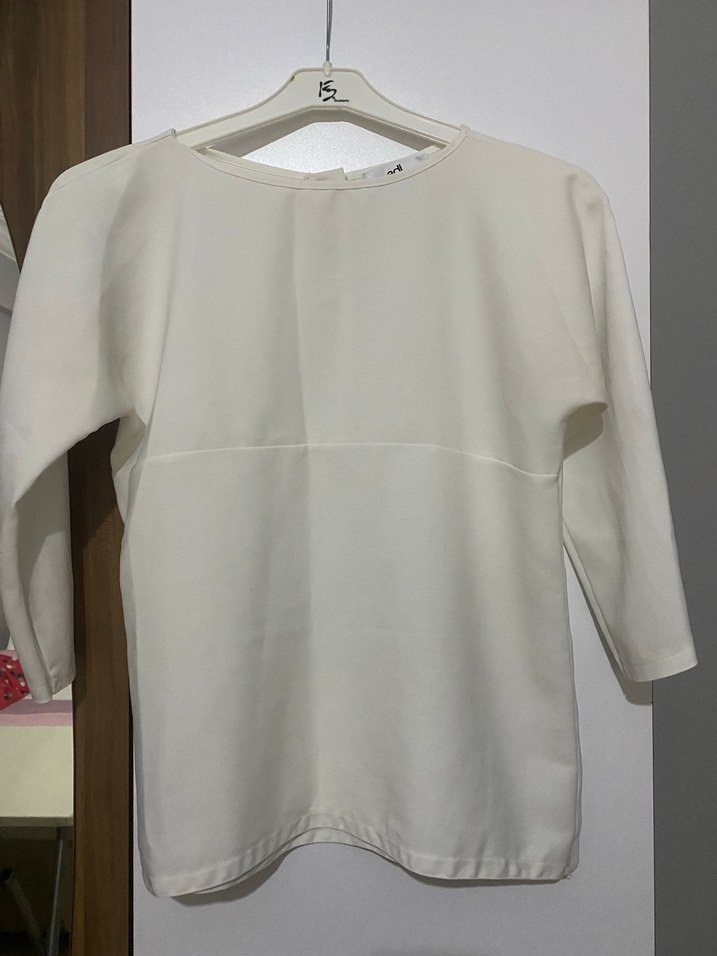 Kadınlar için yuvarlak yakalı, kısa kollu, bol kesim beyaz adil Işık özellikle ceket içi kullanımlarını çok uygundur