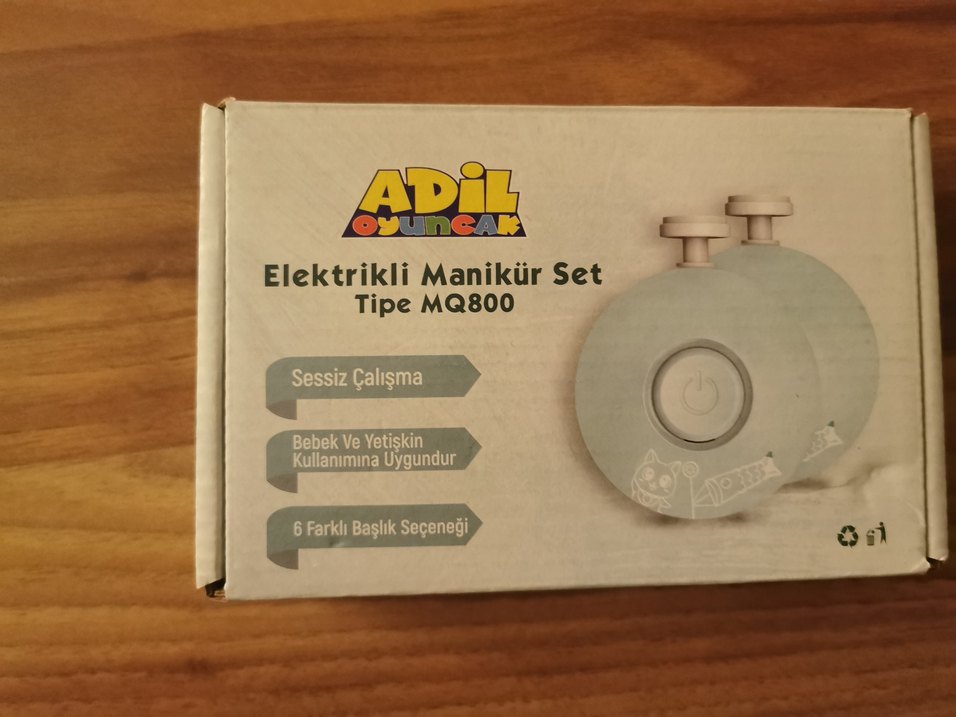Adil Oyuncak elektrikli manikür seti MQ800, sessiz çalışma ve 6 farklı başlık seçeneği ile bebek kullanımına uygundur. ⚙️