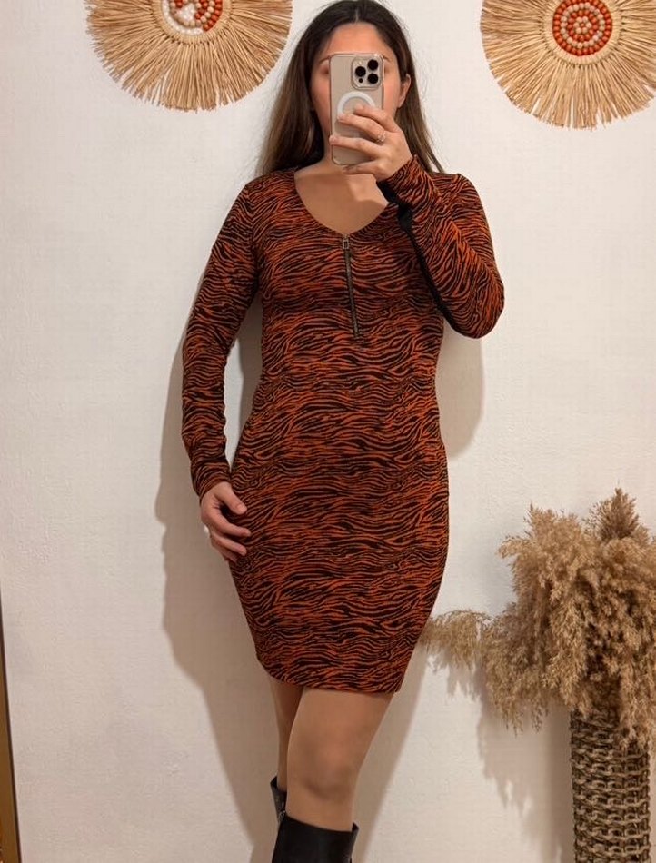 Kahverengi zebra desenli, uzun kollu, V yakalı, fermuar detaylı elbise. Göğüs 36 cm, uzunluk 88 cm. ✨ #nike #zara #hm #lcw #mango #pullbear #bershka #koton #davetelbisesi #elbise #beğeni #yorum #keşfet #mango #ofiselbisesi #stradivarius #crop #basic #mont #kaban #ceket #yağmurluk #mevsimlikceket #kadıngiyim #giyim #uzunkollu #S #M #L #öneri #darkesim #likralı #pantolon #kotpantolon #ucuzgiyim #indirim #addax #yeni #etiketli #sıfır #mağaza #kombin #y2k #sokaktarzı #sokakstili #bluz #tunik #hırka #vintage #amerikanvintage #tayt #oysho #kazak #çanta #ayakkabı #kot #kumaş #likralı #orjinal #penti #mavi #keten #defacto