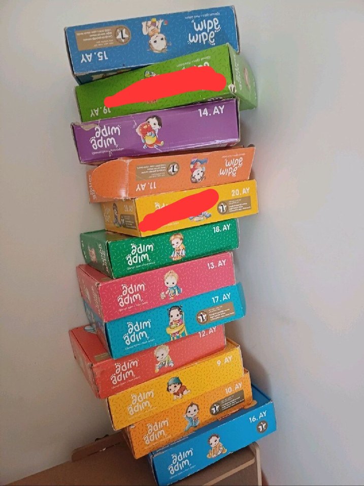 9 aydan 20 aya kadar 12 aylik bir eğitim.seti. oco dopdolu. bebek kullandığı icjn bazı.yipranma yirtiklar.mevcut eksik urunler icin ekstra urun temini yapılıp.gonderilecek.toplu alım fiyatidir bazıları satildi. 9,18,19,20 satildi