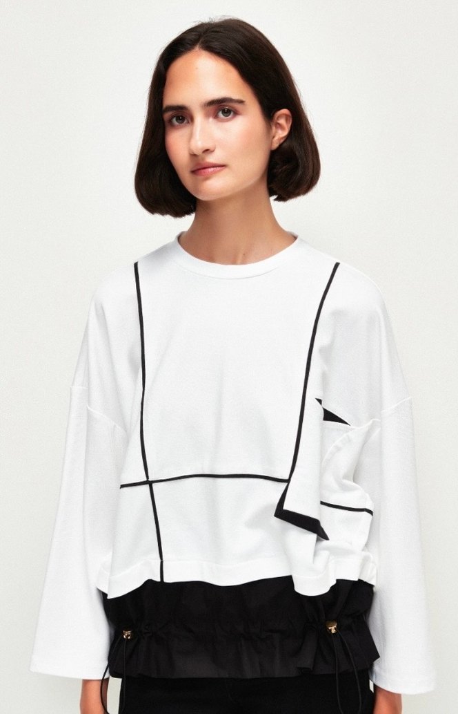 Pamuk kumaştan, uzun kollu ve yuvarlak yakalı, bol kesim kısa beyaz sweatshirt. Etiketli hatasızdır.beli lastikli oversize sweatshirr