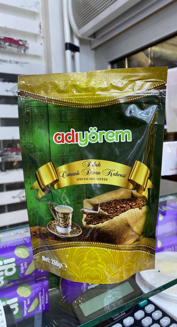 Adıyörem Osmanlı Divan Kahvesi, parlak deve tüyü renginde 250g özel karışım kahve içerir. ☕