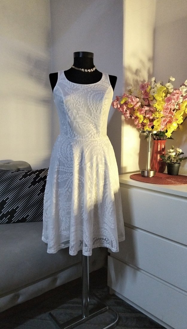 adL 36/S beden boy 90 cm. Beyaz Midi Dantel Mini Gelinlik