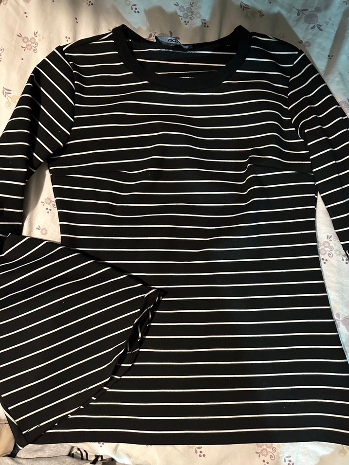ADL adil ışık Çan Kollu Siyah Beyaz Çizgili Bluz