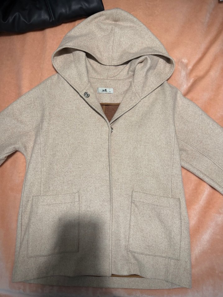 Bej renkte, normal uzunlukta - oversized midi kadın kaban. Uzun kollu, rahat kesimli ve yumuşak sentetik kumaştan üretilmiştir.