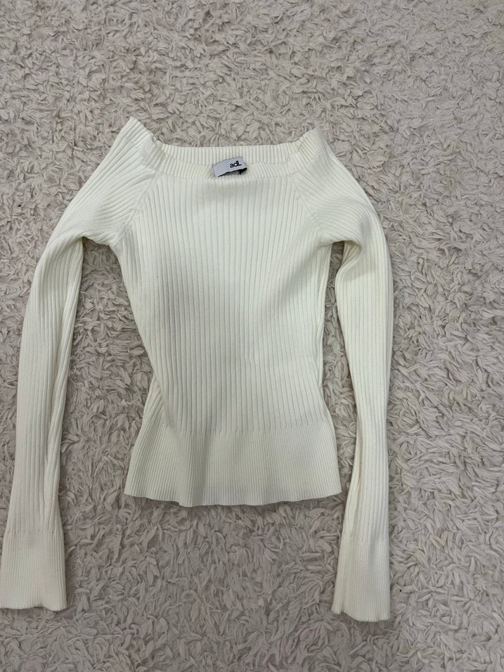 ADL Beyaz Fitilli Triko Kadın Kazak