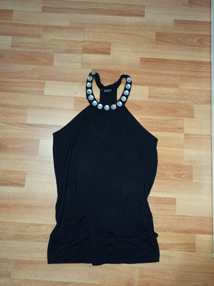 Boncuk detaylı, yüksek yakalı, kolsuz adil ışık bluz. İnce, siyah, satenimsi kumaştan yapılmış, vücuda oturan kesime sahip. Günlük kullanıma uygun. Üzerinde çiçek deseni vardı yıkamada gitti ama hoş olmayan bir görüntüsü yok hoş bile duruyor.