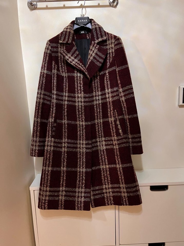 Adl Bordo Ekose Desenli Kadın Yün Midi Kaban