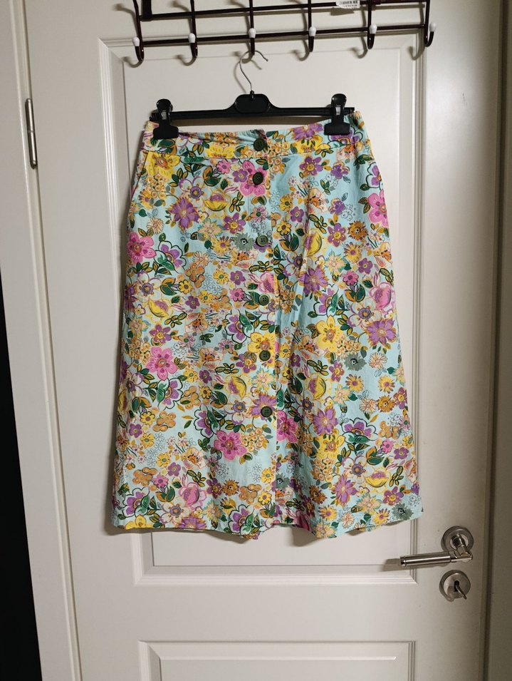 Yumuşak dokulu, düğmeli ön detaylı, pastel çiçek desenli bol kesim bohem mini etek . yeni beden m