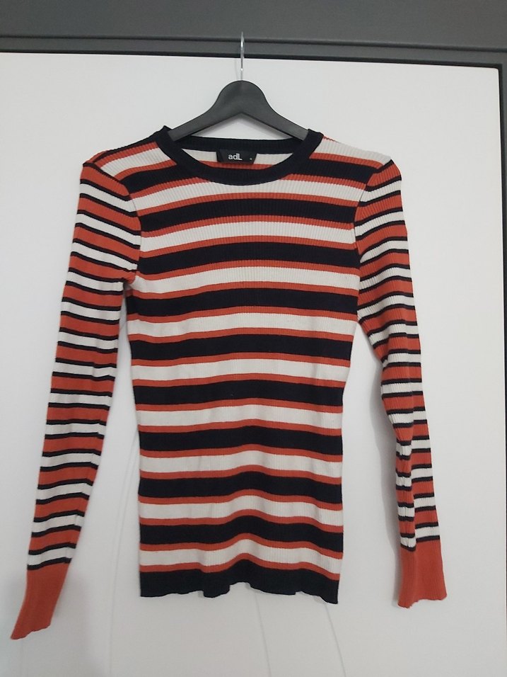 ADL Uzun kollu, bisiklet yaka, çizgili ve ince örme dokusuyla kadın kazak. Rahat kesimi ve sentetik yumuşak kumaşıyla gündelik sokak modasına uygun.
