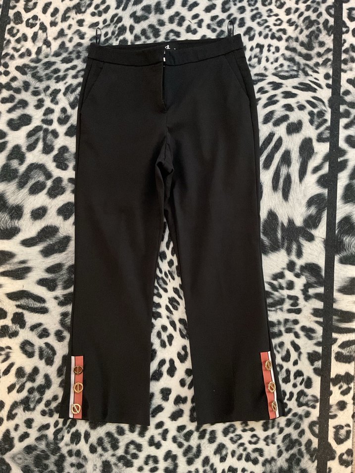 Siyah düğmeli detaylı kumaş kadın pantolon, çok temiz duruyor