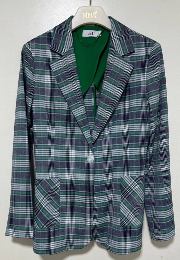 Adl Ekose Desenli Yeşil Kadın Ceket
