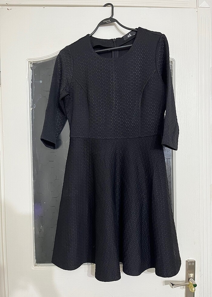 Kullanımı rahat. Kolları dirseğin altında. Bele oturan dizde elbise.