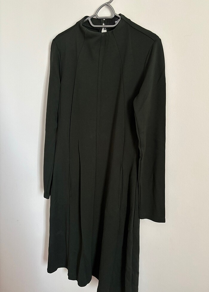 Dar kesim, ördek başı yeşili, önde gizli cepleri var, yalnız bir kez kullandım. Çok şık fakat beden değişimi sebebiyle satıyorum