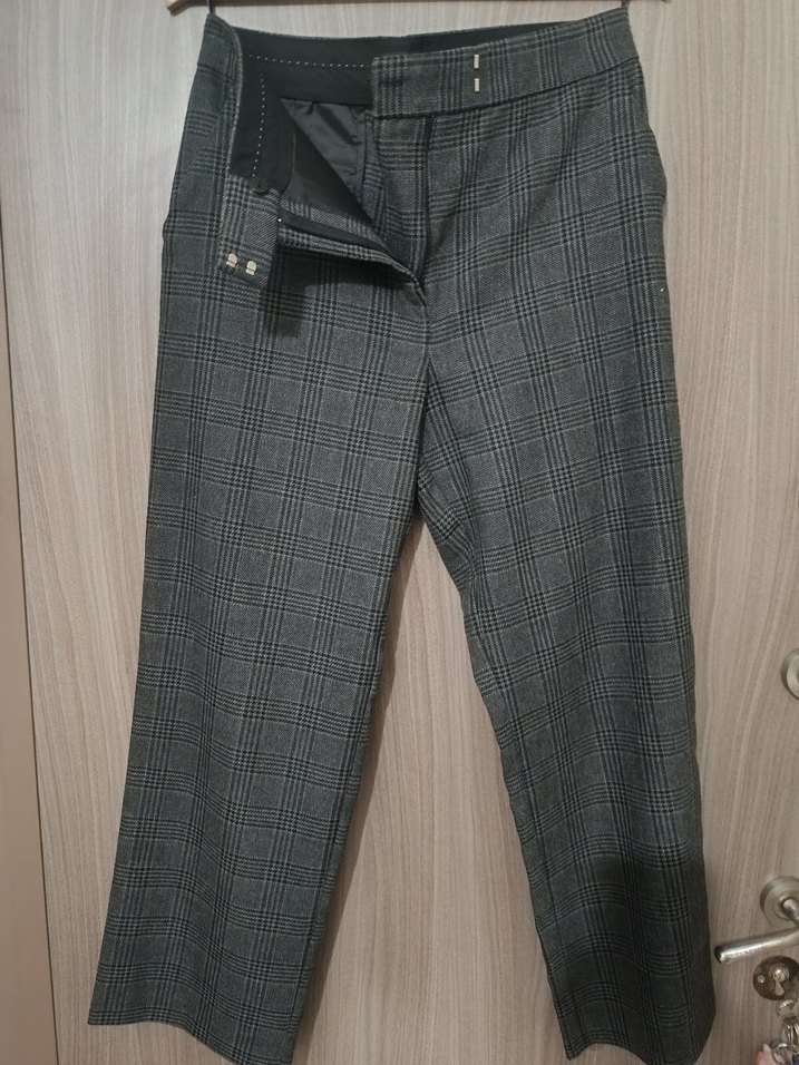 Gri, düğmeli ve düz kesim kadın kumaş pantolon. Ofis ve sokak stili için uygun, sentetik ve midi boy kumaştan yapılmıştır. adL kadın kumaş pantolon temiz