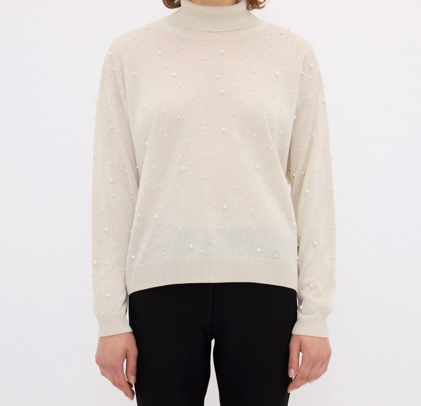 ADL İnci Detaylı Boğazlı Triko Kazak Hiç Giyilmedi
