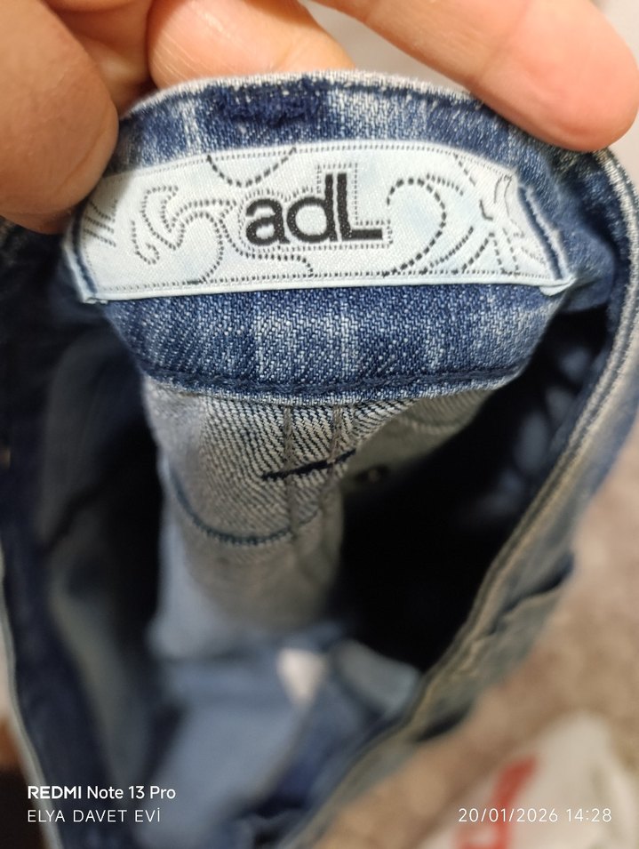adL marka, lacivert batik desenli, fermuarlı, rahat kesim midi boy kadın jean. Günlük sokak stili için uygundur.